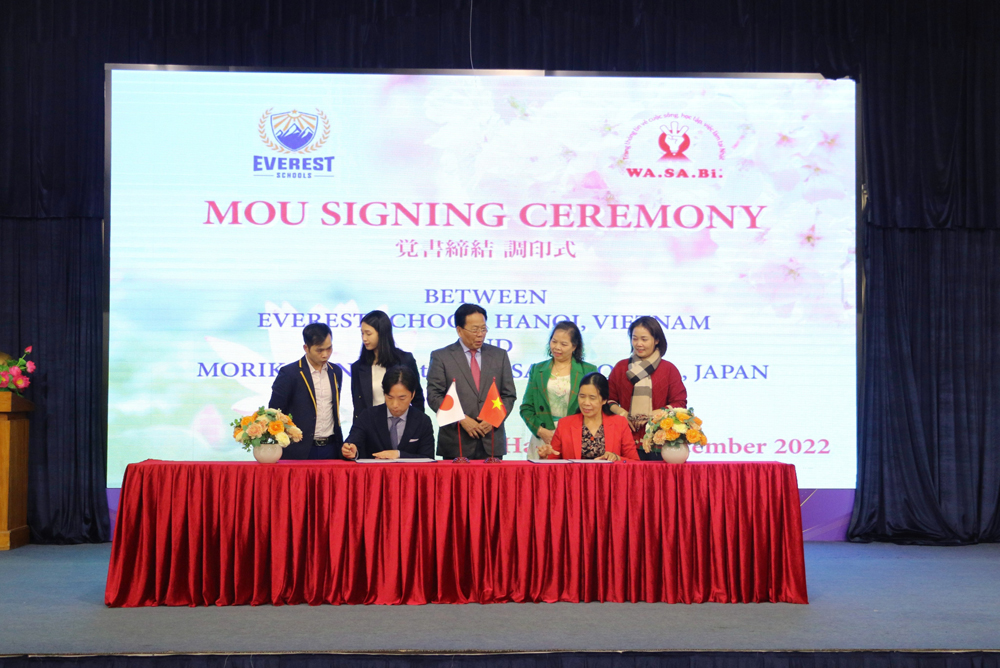 Ngày 21 tháng 12 năm 2022, dựa trên sự tin tưởng, tôn trọng và hợp tác lẫn nhau, Trường Liên cấp Everest và Công ty cổ phần Morikosan (WA.SA.Bi.) đã cùng nhau ký vào biên bản ghi nhớ hợp tác về các lĩnh vực giáo dục tạo cơ hội cho học sinh các lớp Chất lượng cao Sakura Anh - Nhật được giao tiếp với những người bản địa và trải nghiệm văn hóa Nhật Bản, thông qua đó hỗ trợ nhà trường phát triển tiếng Nhật, hỗ trợ học sinh học tiếng Nhật và du học tại Nhật Bản sau này.