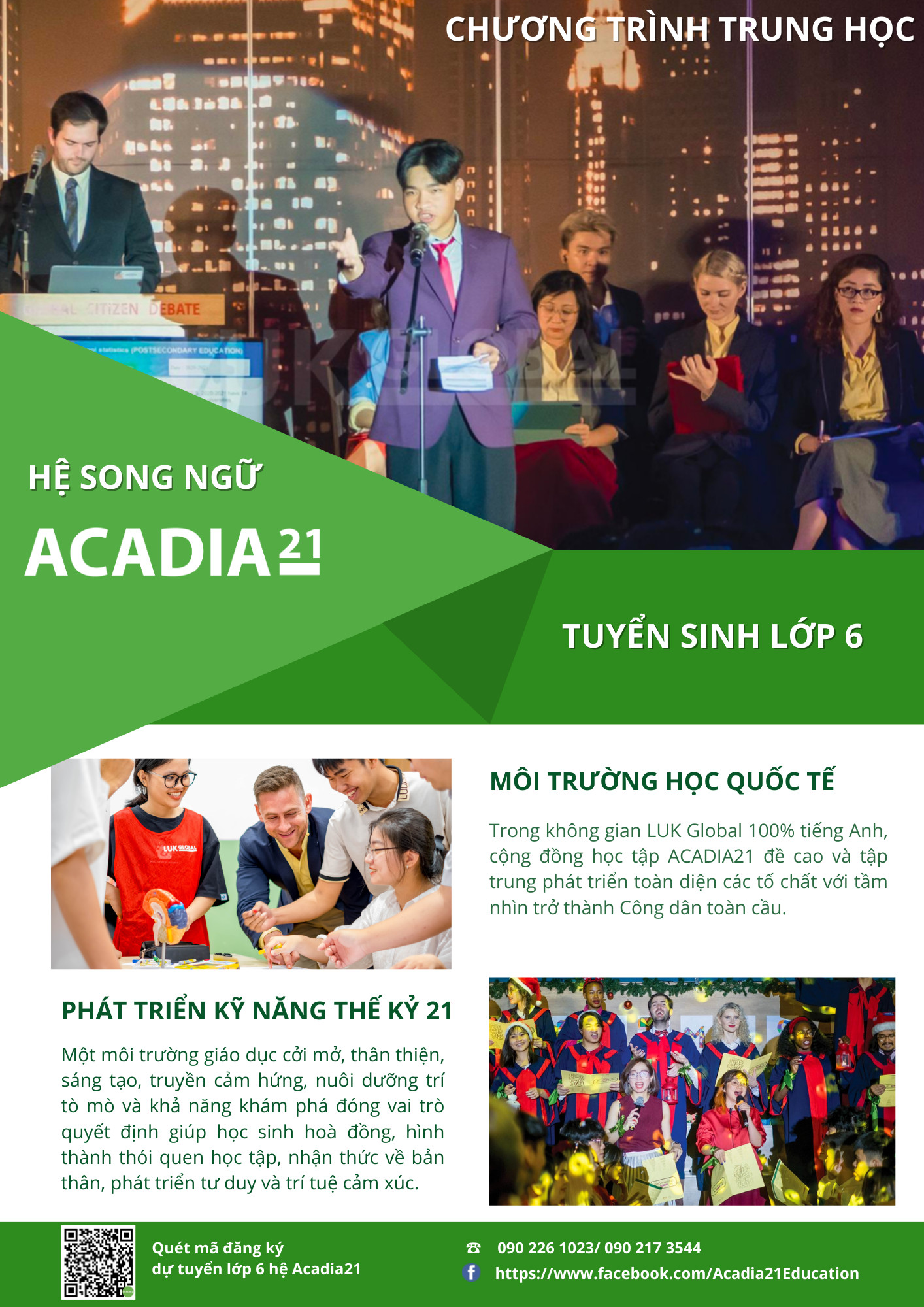 Hệ Song ngữ Acadia21 là thành quả sau hơn 15 năm nghiên cứu giáo dục của đội ngũ Headstart Toàn Cầu (Headstart Research Centre) kết hợp với chương trình tiếng Việt chất lượng cao trong khuôn viên rộng 16.000m2 của Everest Schools.
